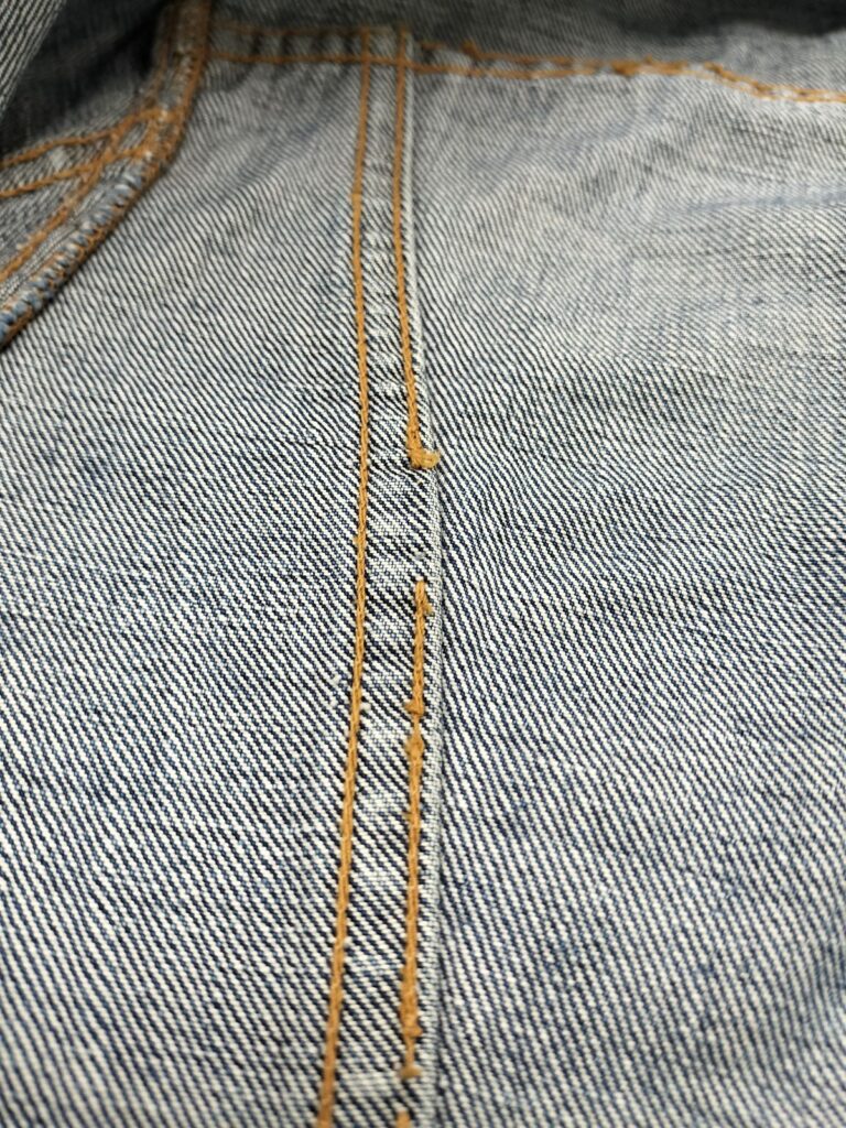 裏側からは補強ステッチ跡がわかりますが